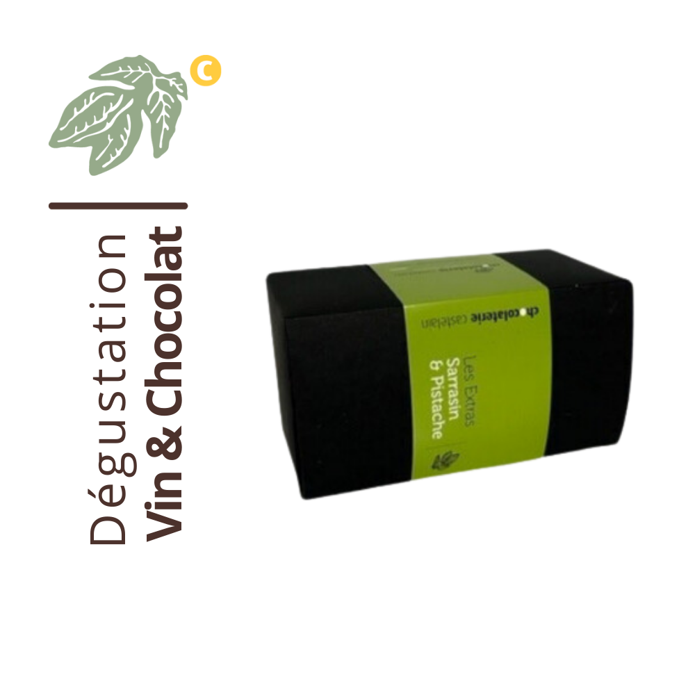 Edition limitée – Duo de chocolat noir praliné sarrasin et extra pistache en ballotin 240g